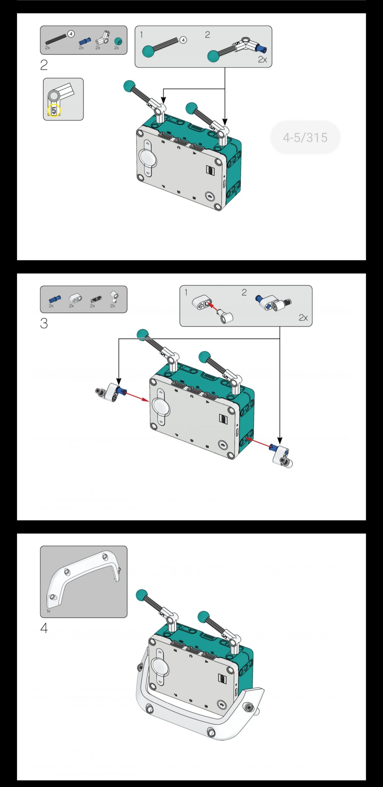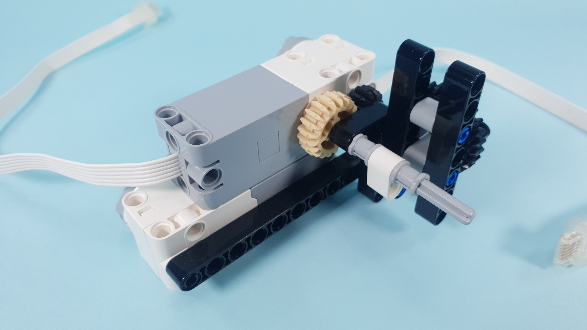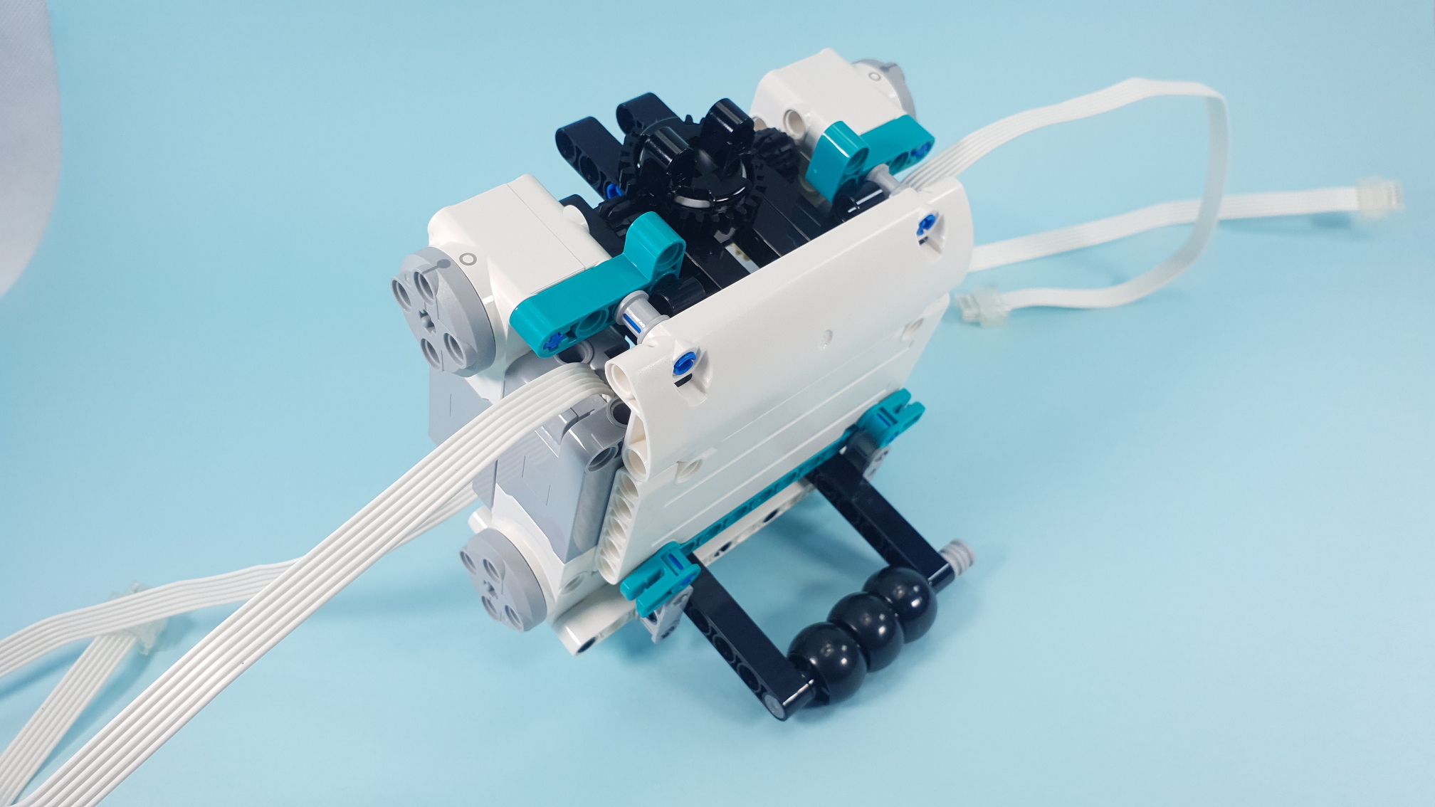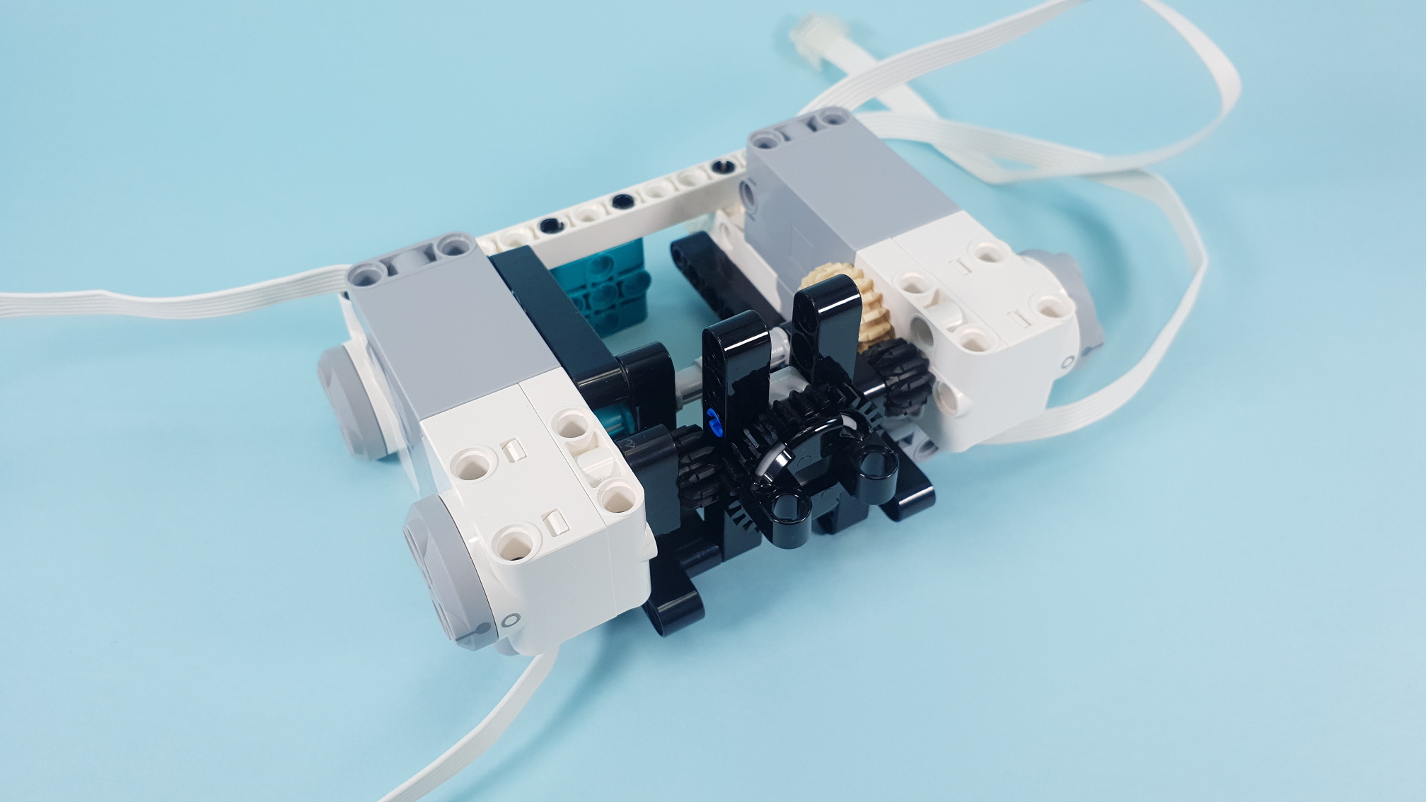 4 özdeş orta motor, bir ışık/renk sensörü ve ultrasonik kullandığını varsaydığım bir mesafe sensörü ile birlikte gelir. EV3’ün aksine, kabloların tümü cihazlara entegre edilmiştir. Bunun iyi bir şey mi yoksa kötü bir şey mi olduğundan henüz emin değilim.