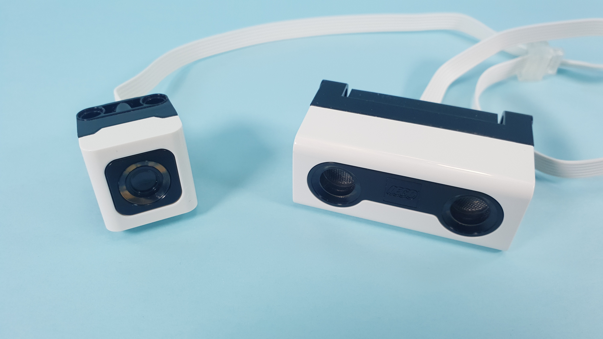 Ultrasonik mesafe sensörü, 4cm’den 200cm’ye kadar çalışır ve bu, EV3’ün kızılötesi yönteminden çok daha güvenilir olmalıdır. Ayrıca her sensörün etrafında bir beyaz ışık halkası vardır ve serin göz efektleri yapmak için her birinin üst ve alt yarısını ayrı ayrı açabilirsiniz.
