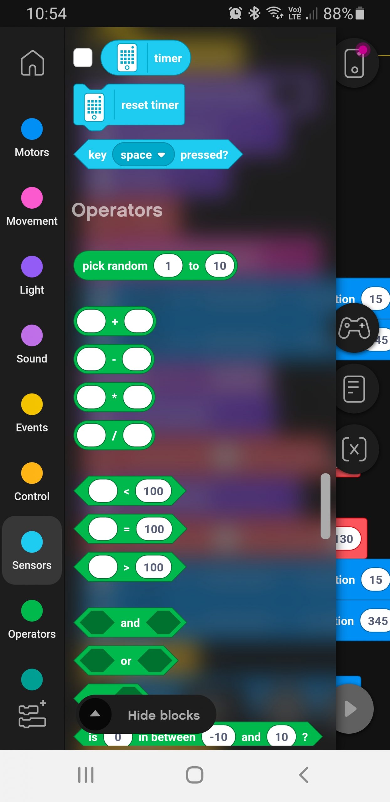 Hub’ın yerleşik sensörlerine ayrı ayrı erişilebilir veya “sallama”, “dokunma” veya “düşme” gibi şeyleri algılamak için sağlanan blokları kullanabilir.